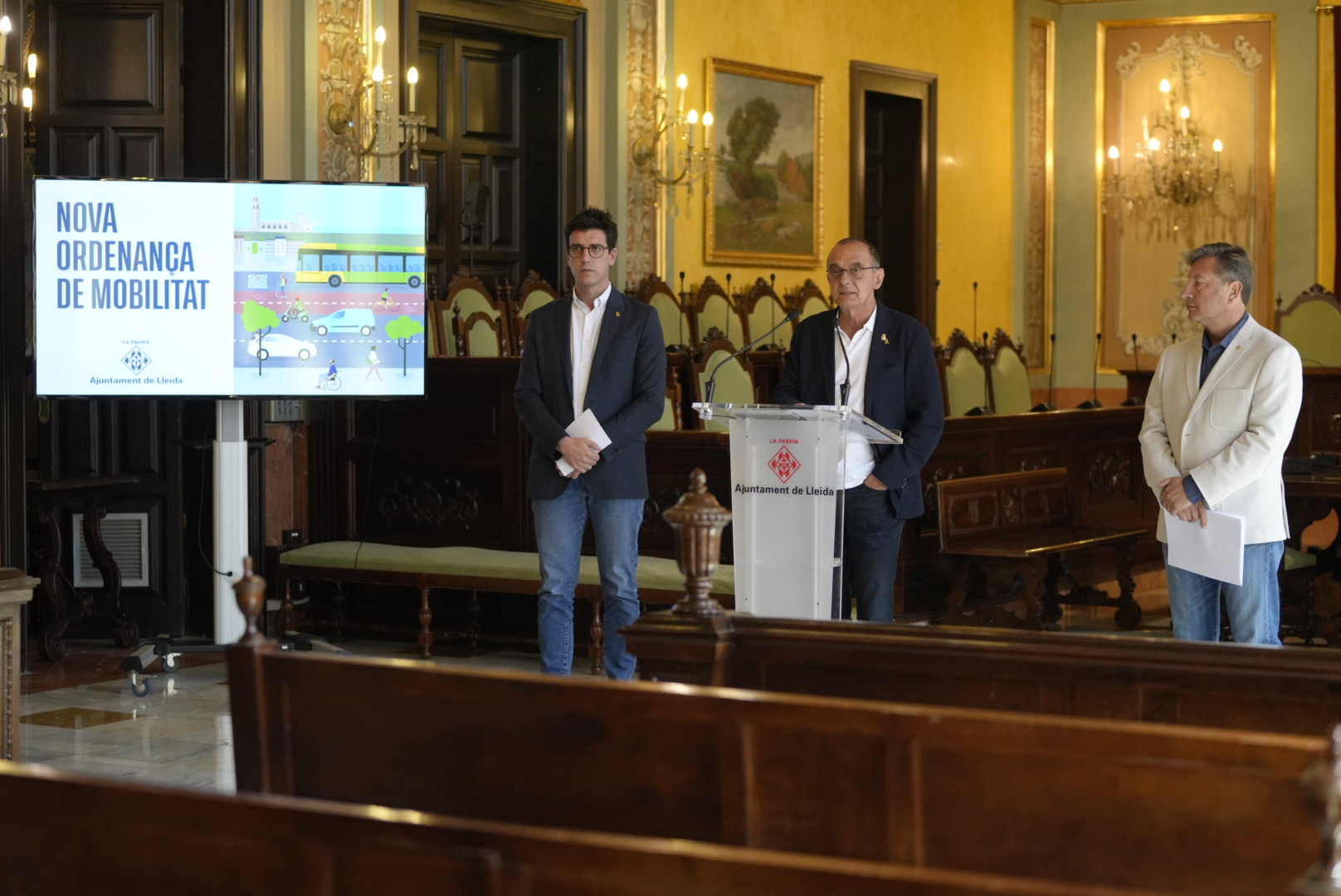 La nova ordenança de mobilitat entra en vigor demà dimecres, 1 de juny, després de la seva aprovació definitiva amb la publicació al Butlletí Oficial de la Província. El nou text prioritza la protecció dels vianants i millora la regulació dels nous modes de transport, com els Vehicles de Mobilitat Personal (VMP), per a garantir la seguretat viària. El paer en cap, Miquel Pueyo, acompanyat del primer tinent d'alcalde, Toni Postius, i del regidor de Mobilitat, Joan Ramon Castro, ha explicat que la Paeria posarà en marxa una campanya per a difondre les novetats en la normativa i també el conjunt del seu contingut, per tal de facilitar el seu coneixement i compliment per part de tota la ciutadania, com a vianants i usuaris dels diferents mitjans de transport. Pueyo ha explicat que arran dels canvis en la mobilitat produïts en els últims anys, especialment amb la irrupció dels patinets elèctrics i la conversió de Lleida en Ciutat 30, "ara tocava fer una actualització en profunditat de tota la normativa, perquè la ciutadania ha de tenir clar quines són les normes i les regles. La Guàrdia Urbana està fent una tasca molt important en aquest àmbit, no només sancionant quan toqui, sinó també fent una tasca de pedagogia, però evidentment volem que també disposi de les eines i el marc legal necessari per a actuar". "Amb aquesta nova ordenança hem volgut prioritzar la seguretat viària i la protecció dels vianants, que són els més fràgils. Per aquest motiu, el nou text deixa clares les diferents tipologies de carrers a la ciutat i es defineix millor quines són les àrees prioritàries per als vianants, on la velocitat dels vehicles no podrà superar els 10 o els 20 km/h, segons els casos. I pel que fa als patinets queda molt clar que, com a norma general, han de circular pel carril bici i per calçades amb límit de 30 km/h. Per tant, no poden circular per la vorera i la Guàrdia Urbana actua amb multes i moltes vegades fent pedagogia perquè això no es produeixi", ha afegit Pueyo. Per la seva banda, Postius ha assenyalat que l'ordenança vigent fins ara estava "desfasada i molt centrada en el vehicle de motor" i calia fer-ne una de nova que incorporés els canvis apareguts en els darrers anys, fos molt més explícita amb la regulació dels VMP i protegís més al vianant. "Aquesta ordenança és fruit d'un procés de gairebé dos anys amb reunions de caràcter tècnic en el qual van participar tant les plataformes d'usuaris dels VMP i a favor de la bicicleta, la Federació d'Associacions de Veïns, la Direcció General de Trànsit, els taxistes, els conductors de busos, la Guàrdia Urbana i els grups municipals. Ha de marcar un punt d'inflexió en la mobilitat a Lleida", ha destacat Postius. A més, el primer tinent d'alcalde ha destacat que aquesta actualització de la normativa vindrà acompanyada de la transformació que suposarà la inversió d'uns 10 milions d'euros en polítiques de mobilitat gràcies als fons europeus, que "ens permetran no només implementar per imperatiu legal la Zona de Baixes Emissions (ZBE) sinó també fer moltíssimes actuacions per pacificar els carrers, ampliar les voreres i facilitar el desplaçament de persones amb problemes de mobilitat, perquè els protagonistes als carrers no han de ser els vehicles, sinó els veïns i veïnes". La regulació de la ZBE també s'elaborarà amb un procés participatiu previ, ha declarat. El regidor de Mobilitat, Joan Ramon Castro, ha assenyalat que la nova ordenança es regeix per una piràmide de la mobilitat amb el vianant com a prioritat i el vehicle de combustió privat com el menys prioritari. "L'articulat és molt concret i extens perquè no pugui haver-hi dubtes. Fins ara, només hi havia un article que regulava tant la bicicleta com els patinets i ara hi hem destinat tot un capítol", ha afirmat Sancions a VMP Novetats de l'ordenança |