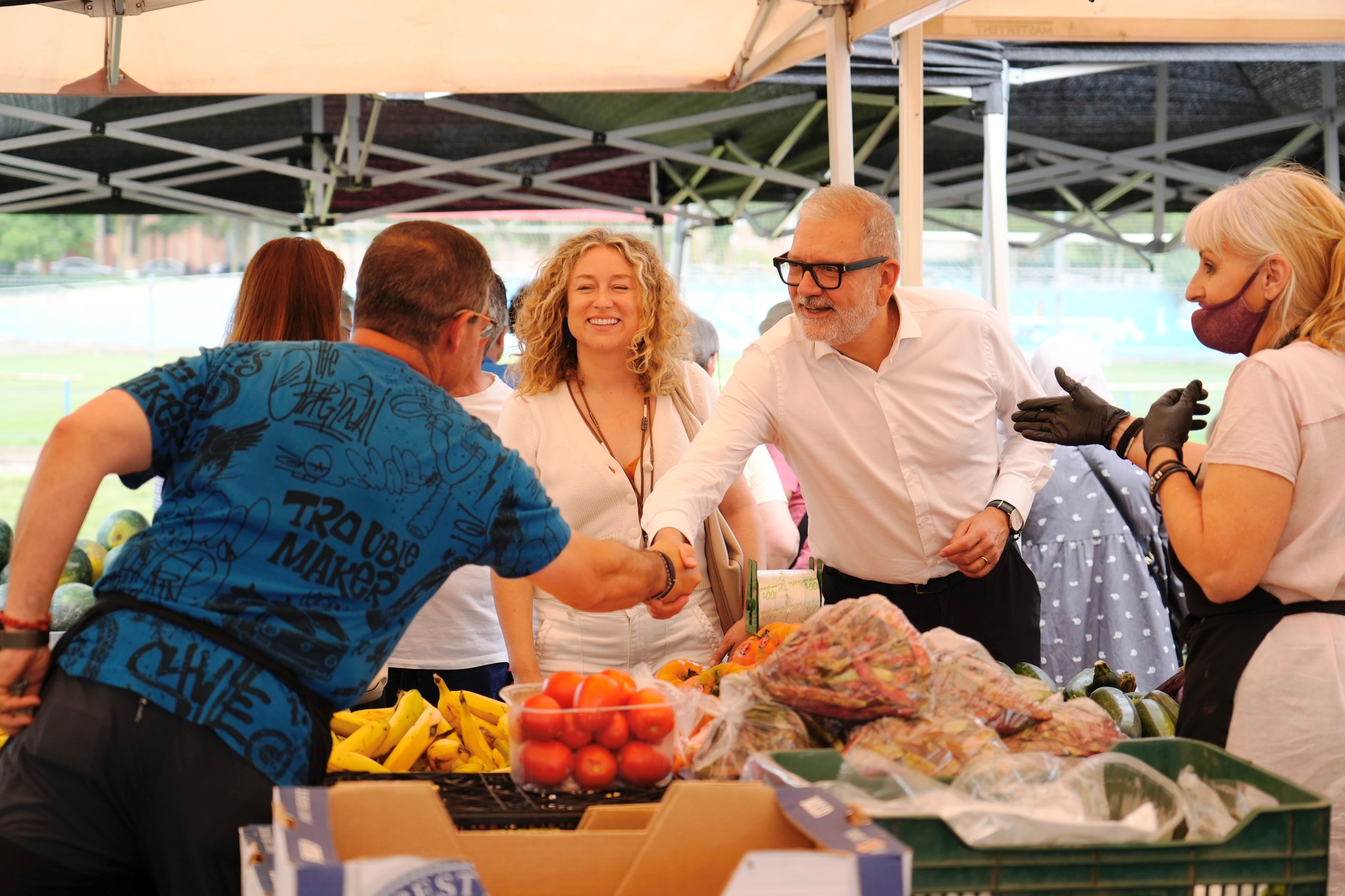 L’alcalde de Lleida, Fèlix Larrosa, acompanyat de les regidores Cristina Morón i Pilar Bosch, i del gerent d’Autobusos Lleida, Carlos Soldevila, ha visitat avui el Mercadet dels dijous de Camp d’Esports i ha fet l’anunci que de manera imminent els autobusos urbans portaran elements identificatius que indicarà que la línia va fins al mercadet del dijous a Camp d’Esports o del dissabte, a Barris Nord.