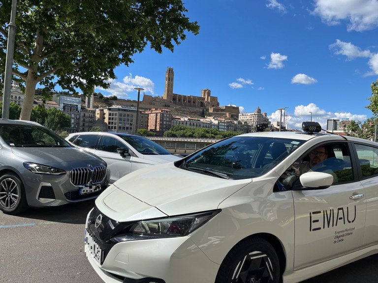 L’Empresa Municipal d’Agenda Urbana posa en marxa aquesta setmana el nou sistema de control de la zona blava. Un dels dos vehicles elèctrics de l’Empresa Municipal d’Agenda Urbana (EMAU) amb càmera de lectura de matrícules s’incorpora a l’operativa de vigilància de l’aparcament de rotació de la ciutat.