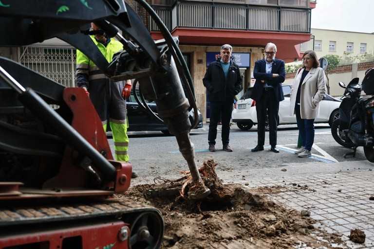 La Paeria realitza aquesta setmana una nova plantació d’arbrat al carrer Doctor Combelles, entre el carrer Ciutat de Fraga i Bisbe Messeguer. L’alcalde de Lleida, Fèlix Larrosa, acompanyat de diversos tècnics i veïns i veïnes del barri de l’Escorxador, ha visitat avui els treballs de plantació, que consisteixen en l’arrabassament de soques mortes, la tala d’algun exemplar que estava malmès i la plantació de nous exemplars de l’espècie Prunus Serrulata “Kanzan”, de floració rosa a la primavera.