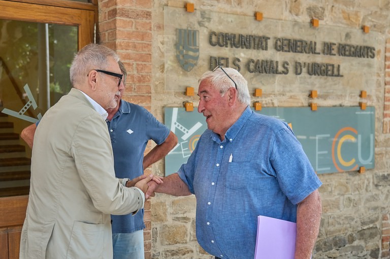 El paer en cap ha visitat avui la Casa Canal, a Mollerussa, i ha mantingut una trobada amb el president de la Comunitat General de Regants, Amadeu Ros, a qui ha ofert plena col·laboració per millorar la gestió hidràulica i enfortir el sector agroalimentari