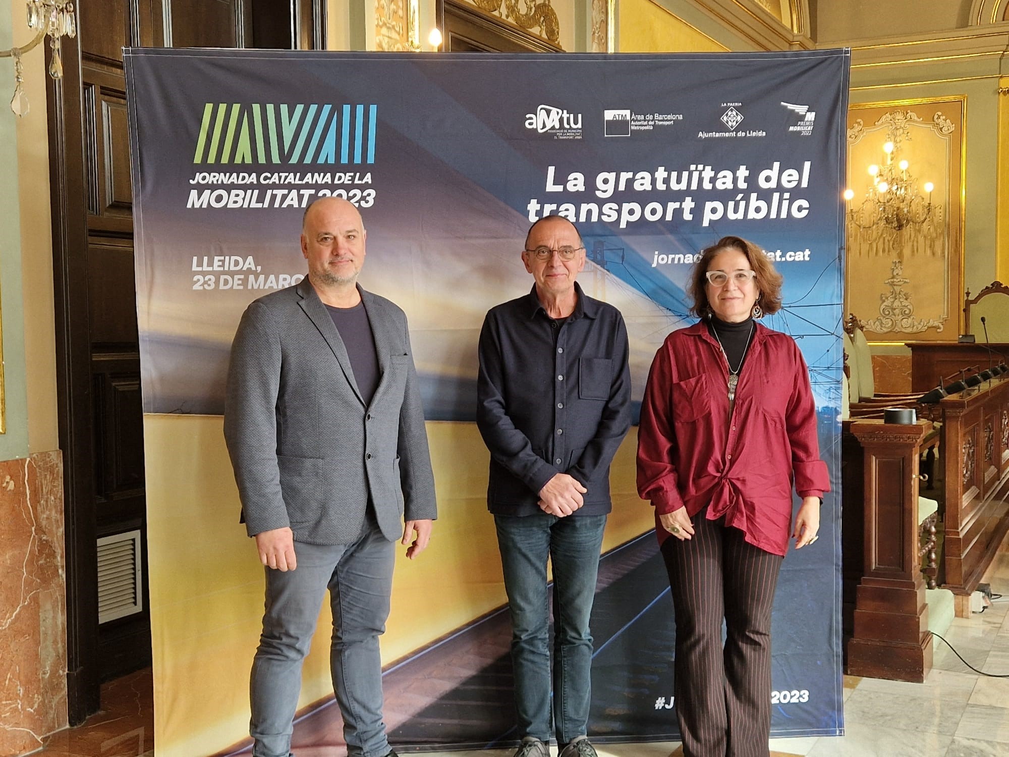 L’alcalde de Lleida, Miquel Pueyo, acompanyat de la presidenta de l’Associació de Municipis per la Mobilitat i el Transport Urbà, (AMTU), Aurora Carbonell, i del director general d’aquesta entitat, Joan Serra, han presentat la 17ena Jornada Catalana de la Mobilitat que es realitzarà al Palau de Congressos – La Llotja de Lleida, el proper dia 23 de març.