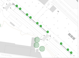 El projecte contempla l’ampliació de la zona d’estacionament amb la remodelació de la vorera de la parada de taxi amb l’objectiu de millorar la seguretat viària. S’afegirà un mòdul semafòric de transport públic per donar prioritat de sortida a la parada de taxis i s’instal·larà un mòdul semafòric per a persones amb deficiències visuals en el pas de vianants. També està previst desplaçar la marquesina de la parada de taxi i el pal de la parada de bus. Finalment es contempla un augment de la vegetació amb la plantació d’arbrat per augmentar les zones d’ombra i fer més confortable l’espai per als vianants.