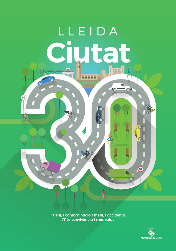 La Paeria dona un pas clau en el model de mobilitat a Lleida i a partir del 30 d’octubre aplicarà la nova regulació en què el 87% de les vies passaran a ser de 30 quilòmetres/hora -s’exclouen el vies principals. El cap de setmana entra en vigor i, durant un mes senyalitzarà i informarà la ciutadania, per començar a sancionar a partir del 30 de novembre. La nova mesura permet avançar cap a una ciutat més saludable, segura i respectuosa amb el medi ambient, amb una circulació en què conviuran vehicles, vehicles de mobilitat personal i vianants. Amb les zones 30 es recuperaran les voreres per a vianants, i les bicicletes i els VMP podran anar per la calçada, creant espais més segures per a tothom.