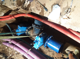 Concretament s’ha connectat una canonada de Ø300 mm de fundició dúctil, que es subministra des d’una de les noves zones d’ampliació de la ciutat (SUR-5), a la canonada existent de Ø300 mm de fibrociment. També s’han instal·lat dues vàlvules per poder aïllar el tram de canonada vella, en cas necessari.