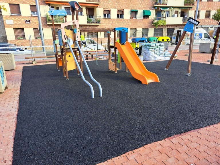 Es renova tota la base de cautxú de la plaça Sant Antoni Maria Claret i s’arranja la de les places dels Pagesos i l’espai infantil Rovelló, a Blondel