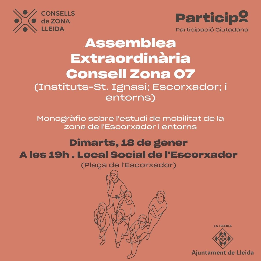 La reunió respon al compliment de l’acord de l’Assemblea Plenària del consell, que aplega els barris Instituts-Sant Ignasi, Escorxador i entorns, la qual es va celebrar el passat 22 de desembre. La trobada veïnal estarà presidida per Joan Ramon Castro, que, a més de regidor de la Zona 07, també ho és de Mobilitat a l’Ajuntament de Lleida.