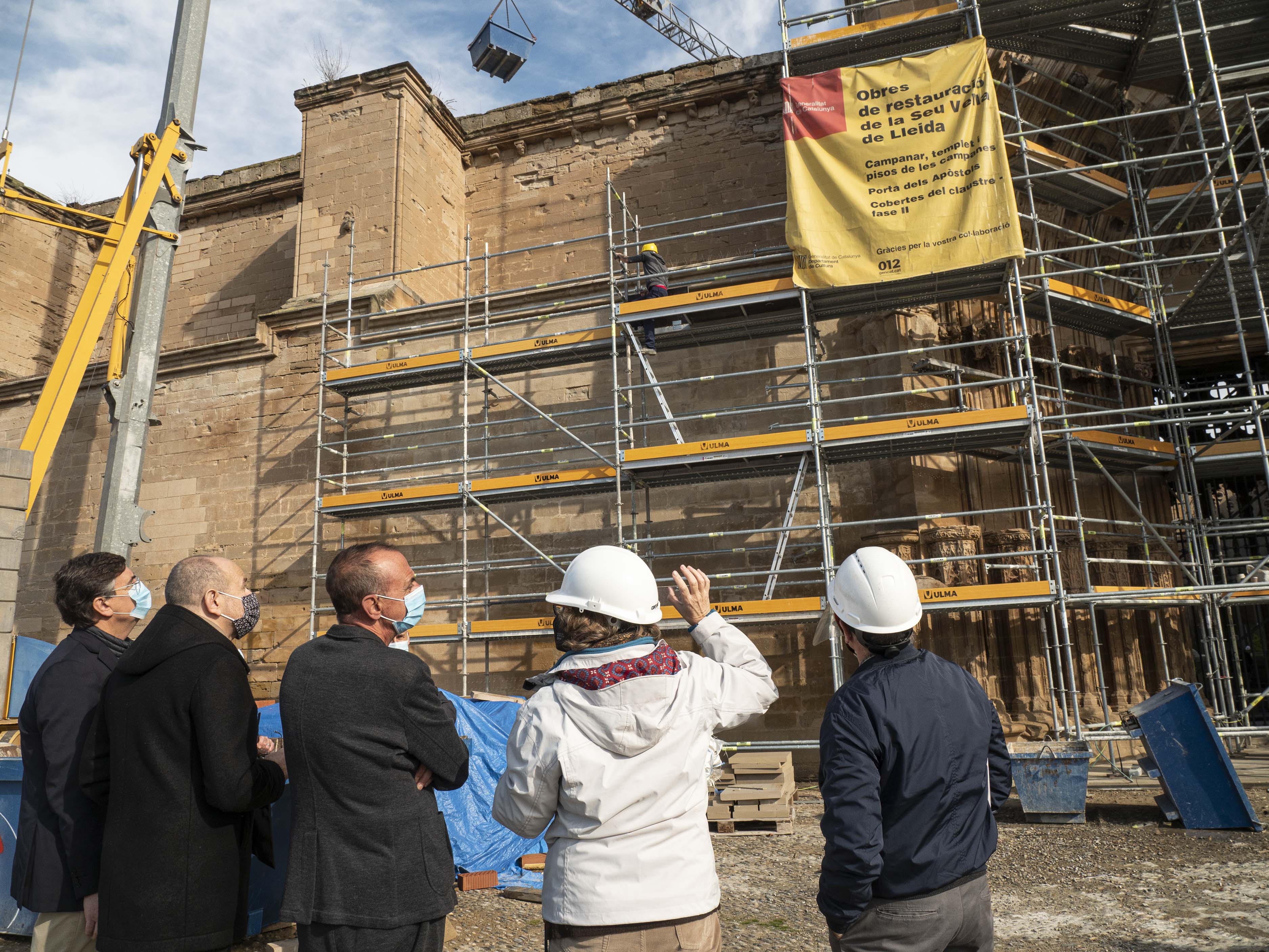 El Consorci ha donat el vistiplau al projecte de restauració de les muralles del Baluard del Rei, que permetrà recuperar i fer visitables aquest indret del turó de la Seu Vella, mercès a les aportacions dels fons europeus Feder i també de la Diputació. Per tirar endavant aquest projecte, l’Ajuntament de Lleida i el departament de Cultura de la Generalitat formalitzaran pròximament un conveni de col·laboració, que està previst executar en tres anualitats i que ha de permetre recuperar trams de muralla no havien estat mai restaurats i frenar el seu deteriorament, consolidant la pedra i recuperant les antigues troneres, a més de restaurar un pany de muralla caigut. Aquesta actuació també permetrà obrir aquest espai per al passeig dels visitants. En finalitzar les reunions, el regidor de Cultura, Jaume Rutllant, ha assenyalat “l’atenció que la Seu Vella mereix per les Administracions, en especial la Generalitat i la Diputació. Hi ha una mirada contínua i progressiva vers el monument”, ha dit. Al mateix temps ha posat èmfasi en les tres obres de rehabilitació que s’han executat enguany al turó. “Aquest 2021, quan es retirin les bastides, es podrà potenciar aquest monument, insígnia del país, i per tant fer de Lleida un atractiu turístic i patrimonial de primer ordre”. La director general del Patrimoni Cultural ha anunciat la finalització per abans de final d’any de les tres actuacions que s’estan fent a la Seu Vella (la recuperació de la Porta dels Apòstols, la primera fase de restauració de les cobertes del Claustre i la rehabilitació de l’interior del Campanar), les quals han posat al descobert important troballes. “Per la Generalitat, la Seu Vella és un monument de primera categoria i sempre hem tingut present intervenir-hi i recuperar-ho, per retornar-ho en condicions a la ciutadania”, ha dit Elsa Ibar. “Ha estat una restauració molt interessant en el terreny científic. S’ha fet una important recuperació de tots els elements escultòrics de la Porta dels Apòstols, però també s’ha actuat en l’àmbit constructiu, per evitar que les aigües seguissin malmetent la portalada”, ha explicat la directora general. La restauració ha posat al descobert la policromia de les figures de la Porta dels Apòstols, algunes amb pa d’or. “Tot això s’ha netejat, restaurat i consolidat. També s’han segellat fissures i recuperats elements que s’havien perdut”, ha dit la directora general, que ha informat que s’ha tingut en compte la divulgació de la bellesa de les troballes del monument, per la qual cosa s’han digitalitzat i escanejat amb làser els treballs, per poder dibuixar i crear en 3D un mapping o qualsevol altra tecnologia similar. Ibar ha destacat com a gran troballa la descoberta d’unes traces dibuixades a la coberta del Claustre. “Vénen a ser una mena de plànols dels arquitectes, a escala 1:1, on es dibuixaven allò que després anaven a construir”, ha continuat dient, tot destacant la importància de la descoberta. “És una troballa excepcional, única a Catalunya i la més antiga d’Europa”. Aquesta troballa ha obligat a reconvertir el projecte per poder seguir-ho estudiant. “No les cobrirem del tot i farem un seguiment de l’evolució i degradació d’aquestes traces, abans de donar-li una solució definitiva”, ha explicat Elsa Ibar, la qual ha afegit que la segona fase de la restauració de la coberta del Claustre és un compromís del Govern de l’Estat i ha expressat la confiança que les obres es puguin licitar el pròxim any. “Si més no, des de la Generalitat, així els ho recordem”, ha apuntat. Pressupost pel 2021 El director del Consorci del Turó de la Seu Vella, Joan Baigol, ha informat sobre l’aprovació del pressupost per l’any vinent, que creix amb relació al de l’actual exercici, quedant fixat en 1.090.000 euros. Tot i això, Baigol ha explicat que aquest increment d’uns 300.000 euros correspon al projecte de restauració de les muralles del Baluard del Rei, ja que la despesa corrent i els ingressos propis s’han ajustat, per les previsions de la incertesa de la Covid 19 i tenint en compte que el 40% del pressupost es finança amb les visites i lloguer d’actes, els quals s’han vist reduïts considerablement per la pandèmia. L’afluència de visitants durant la temporada d’hivern va créixer un 3% respecte al 2019, al passar pel monument 10.730 persones. Uns números que es van capgirar en declarar-se la pandèmia. La temporada de primavera (març a maig), les xifres van caure un 93,5%, mentre que, a l’estiu, el descens va ser del 87%, respecte a la mateixa època de l’exercici anterior.
