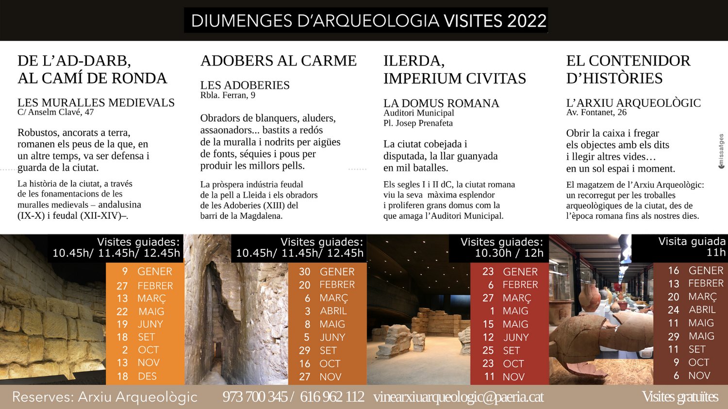 L’Arxiu Arqueològic ha preparat un nou calendari de propostes per als diumenges d'aquest 2022, amb les quatre visites a les muralles medievals, les Adoberies, la domus romana de l’Auditori i el mateix Arxiu. Són gratuïtes, amb reserva prèvia i d’acord a les mesures Covid.