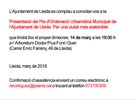 Presentació del Pla d'Ordenació Urbanística Municipal de l'Ajuntament de Lleida. Per una ciutat més sostenible.