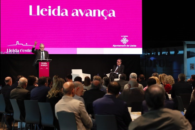 L’alcalde, Fèlix Larrosa, ha presentat, a la Llotja, el procés de transformació econòmica, industrial i social que viu la ciutat en la conferència “Lleida Avança”.