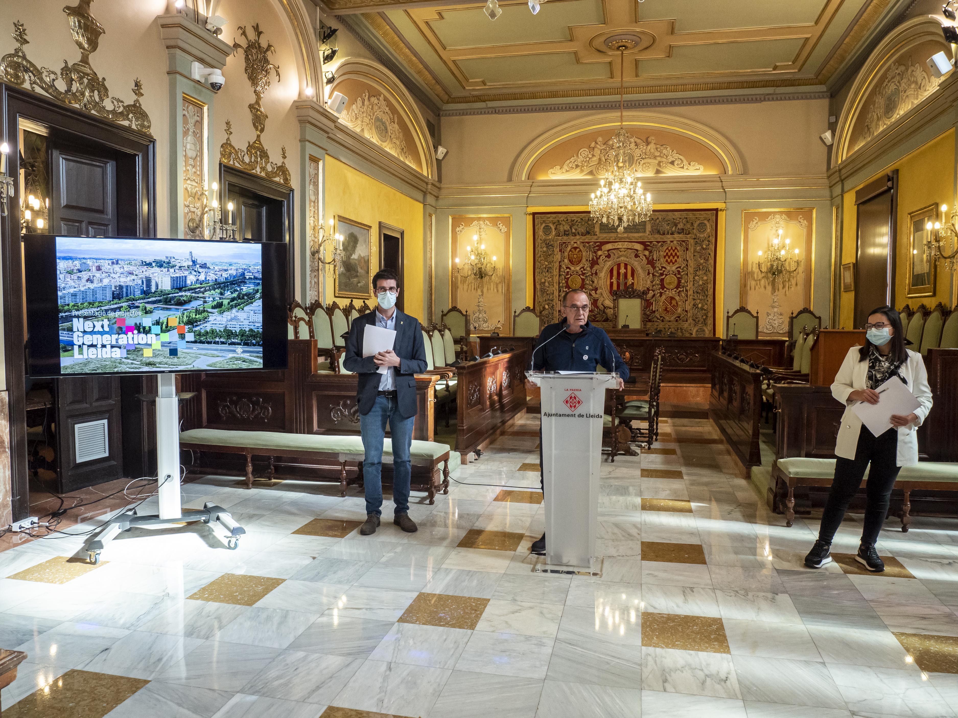 L’Ajuntament de Lleida ha presentat deu projectes per un import total de 16,5 milions d’euros a la primera de les convocatòries engegada des del Ministeri de Transports, Mobilitat i Agenda Urbana dins dels fons europeus NextGeneration, per a la implantació de zones de baixes emissions i la transformació digital i sostenible del transport urbà. El Paer en Cap, Miquel Pueyo, acompanyat pels tinents d’alcalde Toni Postius i Jordina Freixanet, ha presentat avui les propostes i ha destacat la ferma aposta de la Paeria per un “nou model de mobilitat que redueixi la presència del vehicle vehicles de combustió dins de la ciutat”, una iniciativa plenament alineada tant amb els objectius de la convocatòria, com amb els de l’Agenda 2030 i les prioritats del govern municipal. “Lleida no pot ni vol deixar escapar aquesta oportunitat que ens ofereixen els fons europeus NextGeneration per a promoure la transformació de la ciutat i acostar-la una mica més cap al model de ciutat intel·ligent, tecnològica i sostenible que volem per al futur i que hem definit amb el concepte Lleida AgroBiotech 2030”, ha afegit l’alcalde. Pueyo ha destacat també la necessitat de comptar amb “la màxima complicitat dels agents econòmics i socials de la ciutat de Lleida” i defugir debats partidistes per sumar tots per la millora de la ciutat. El primer tinent d’alcalde i regidor d’Urbanisme, Toni Postius, ha detallat els projectes presentats, que tenen com a objectiu promoure els canvis cap a modes de transport més sostenibles a l’entorn urbà, apostar per la descarbonització de la mobilitat, millorar la qualitat de l’aire, especialment en entorns sensibles com escoles i centres mèdics, i fomentar l’accessibilitat al transport públic. “Hi ha moltes actuacions que si se'ns atorga el finançament que hem sol·licitat comportaran canvis importantíssims a la ciutat, des del punt de vista de com ens desplacem, de l'ús dels vehicles privats i d'altres mitjans sostenibles, que faran que el vehicle vagi perdent terreny en benefici dels vianants i els mitjans de transport més sostenibles. Per tant, comporta un canvi de xip molt important, que portarà segurament al començament complexitat, dificultats i algunes incomoditats, però hem de ser conscients que aquestes polítiques que ens marca la Unió Europea el que fan és enfocar quin ha de ser el futur”, ha explicat Postius, qui ha volgut agrair especialment la tasca del personal tècnic de la regidoria d’Urbanisme que ha redactat aquests projectes. Els projectes es divideixen en dos blocs, tenint en compte que, d’entrada, els diners disponibles es repartiran entre els del primer, i només s’analitzaran els de segon bloc si queda pressupost disponibles. Les propostes plantejades són les següents: BLOC 1: Projecte d’implantació d’una zona de baixes emissions i actuacions per a un canvi de model de ciutat a Lleida • Nous eixos de vianants, bicicletes i transport públic a vies principals dins de la ZBE: Rambla d’Aragó, Prat de la Riba i Alcalde Rovira Roure. S’eliminen carrils per a vehicles i aparcament per a implantar carril bus, carril bici i més espai per a vianants. Inclou també actuacions en vies secundàries: més de 20 passos de vianants o cruïlles elevats a Escorxador, Universitat i Pardinyes, l’ampliació de voreres o la vianalització parcial als carrers Bisbe Messeguer, Vallcalent i Girona i la plantació d’arbres per a reduir l’efecte illa de calor. El pressupost previst és de 2.650.515 € i el termini finalització és març de 2023. • Eixos de carril bici i vianants a l’accés al polígon el Segre (carril bici en un tram d’1,8 km i condicionament de voreres accessibles) i als camins escolars cap a les escoles Espiga (750 m al Camí de Montcada), Sant Jordi-Manuel de Montsuar (2 km a l’N-230) i Camp Escolar (440m al Passeig de Ronda). El pressupost previst és de 1.489.548 € i el termini de finalització és abril de 2023. • Adquisició de 5 autobusos elèctrics per a substituir-ne 5 dièsel, més 6 punts de recàrrega . El pressupost previst és de 3.630.000 € i el termini de finalització és març de 2023. • Transformació digital del transport públic, per a disposar d’un nou Sistema d’Ajuda a l’Explotació, amb informació millorada, nous sistemes de pagament amb el mòbil i l’optimització de rutes de transport en funció de la demanda, reduint emissions i sorolls. El pressupost previst és de 1.290.258 € i el termini de finalització és abril de 2023. BLOC 2: Projecte de mobilitat sostenible i reducció d’emissions en desplaçaments a polígons, rutes escolars i equipaments de Lleida • Adquisició de dos autobusos elèctrics per a substituir-ne dos dièsel, més dos punts de recàrrega fixos a les cotxeres. El pressupost previst és de 1.331.000 € i el termini de finalització és març de 2023. • Prioritat per a vianants en camins escolars i eixos de barri. Es reduirà l’ample de carrils per a vehicles o s’eliminarà aparcaments per a implantar voreres i algun carril bici en els accessos a escoles i centres mèdics següents: • Creació d’eixos per a vianants i ciclistes per accedir al complex de La Caparrella i al Parc Científic i Tecnològic i prolongació dels eixos de vianants i ciclistes al polígon industrial El Segre. L’actuació abasta 9750 m2. El pressupost previst és d’1.804.646 € i el termini de finalització és març de 2023. • Eix de vianants de Rambla Ferran i avinguda Francesc Macià. Es planteja ampliar la vorera als dos costats (eliminant un carril de circulació al costat Eix i un d’aparcament al costat riu), plantar arbres i transformar un dels carrils en carril bus. El pressupost previst és de 539.466 € i el termini de finalització és abril de 2023. Segueix la preparació de projectes per a noves convocatòries La segona tinent d’alcalde i regidora de Presidència, Jordina Freixanet, ha explicat,