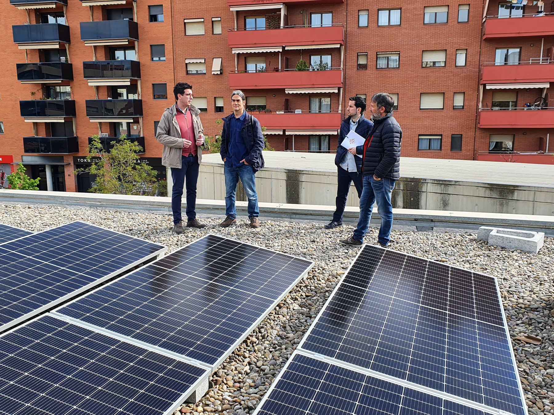 Aquesta setmana s'està enllestint la col·locació de plaques fotovoltaiques a la teulada del centre cívic de Balàfia, que permetrà el seu autoabastiment elèctric, ha destacat el primer tinent d'alcalde, Toni Postius, que ha visitat l'edifici acompanyat del portaveu del Comú, Sergi Talamonte