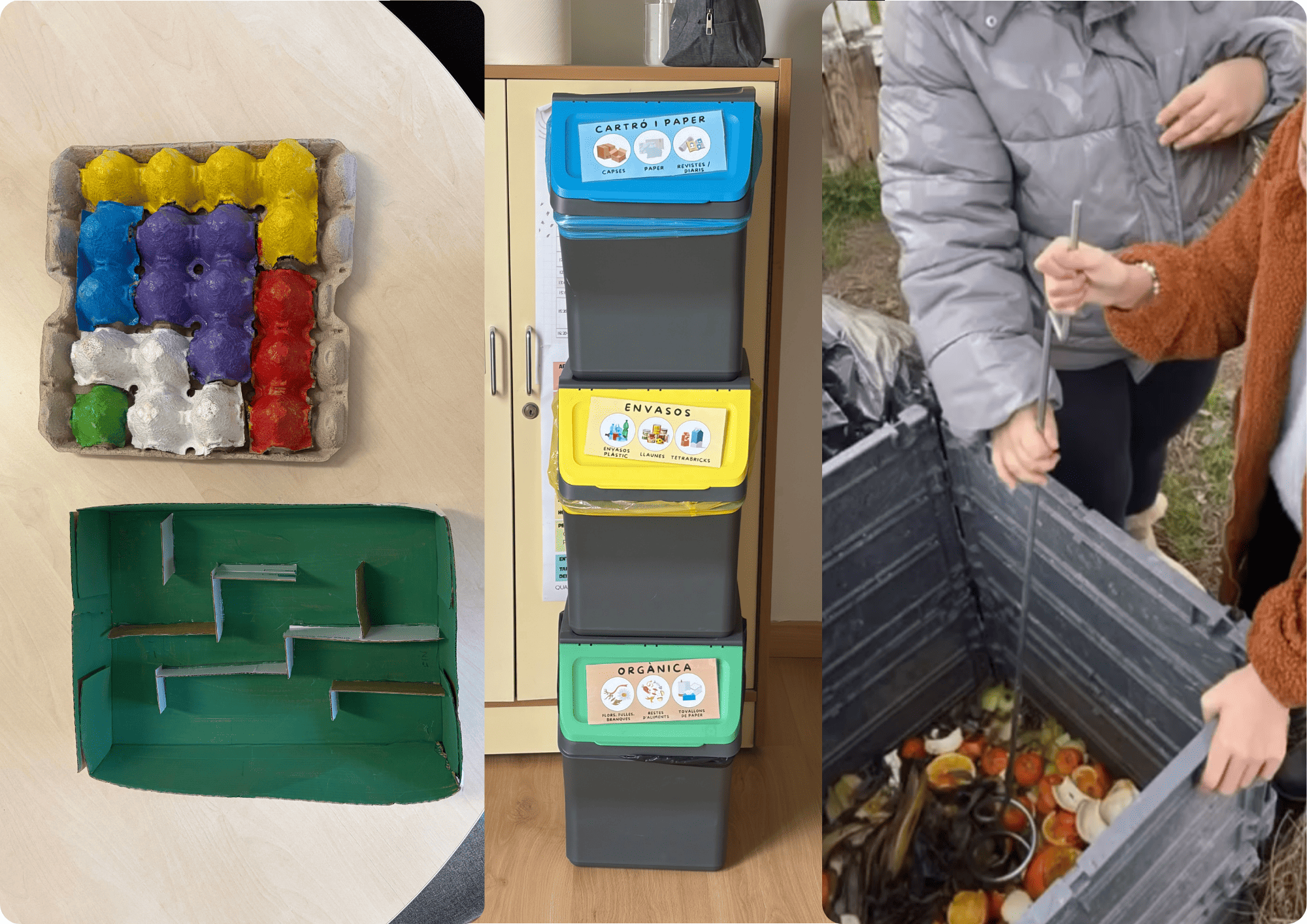 “No ho llencem, podem fer un joc!”, comenta una alumna. Aquestes activitats fomenten la creativitat i permeten treballar habilitats motrius, cognitives i socials. Els infants descobreixen que molts objectes poden tenir una segona vida i que reutilitzar també és una manera de tenir cura del nostre entorn.