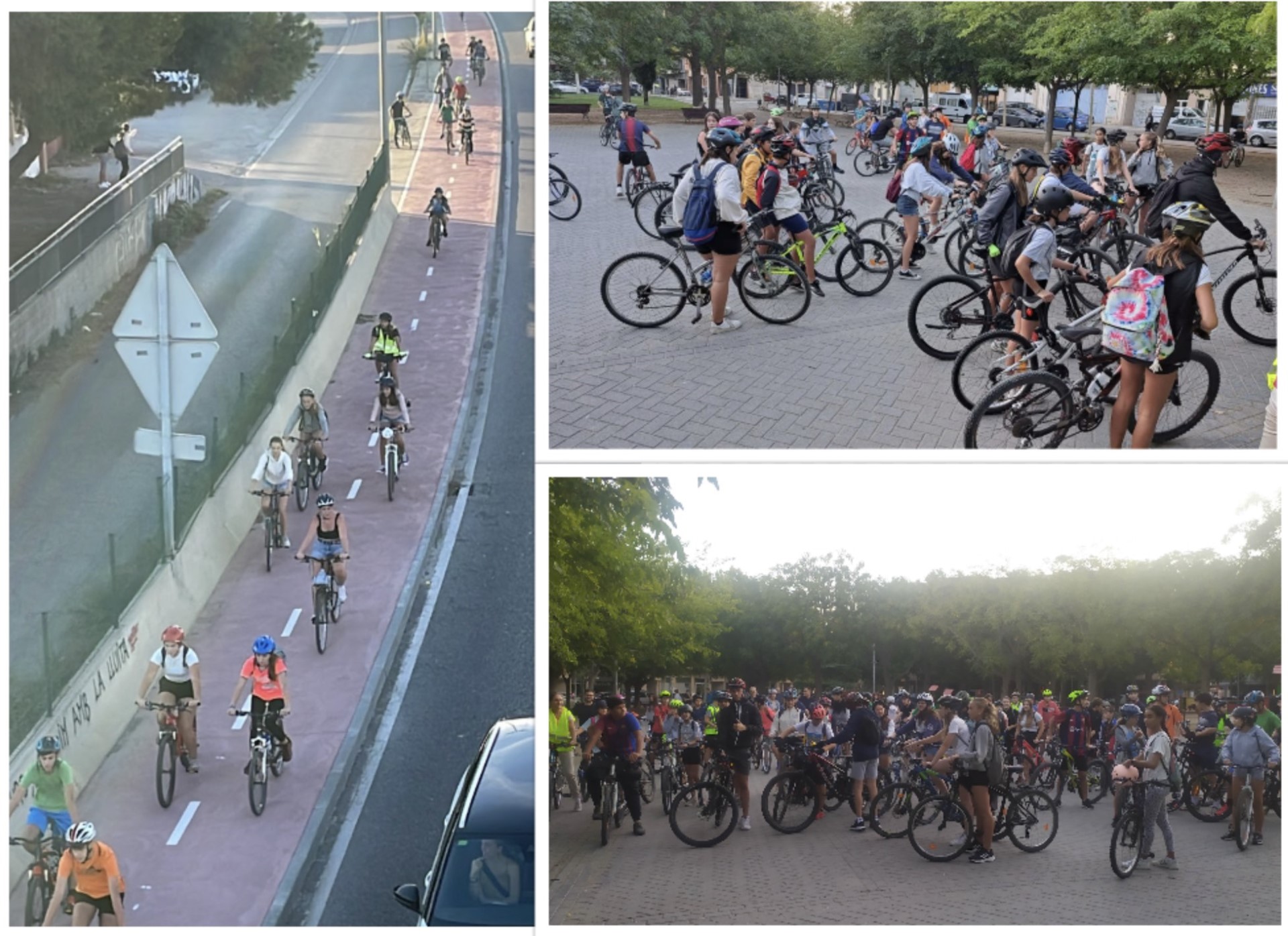 - A partir d’aquell moment, hem tingut reunions i contactes periòdics amb La Paeria per anar millorant el traçat, també amb l’AFA i hem impulsat setmanalment el que nosaltres anomenem Bicidivendres; és a dir, proposem a tothom que vulgui que vingui amb nosaltres en bici. Els acompanyem de pujada (7.30 h a la Plaça de les Magnòlies) i d’aquesta manera donem més seguretat a l’alumnat i, sobretot, a les famílies, a més de que si anem en grup és més divertit i motivador!