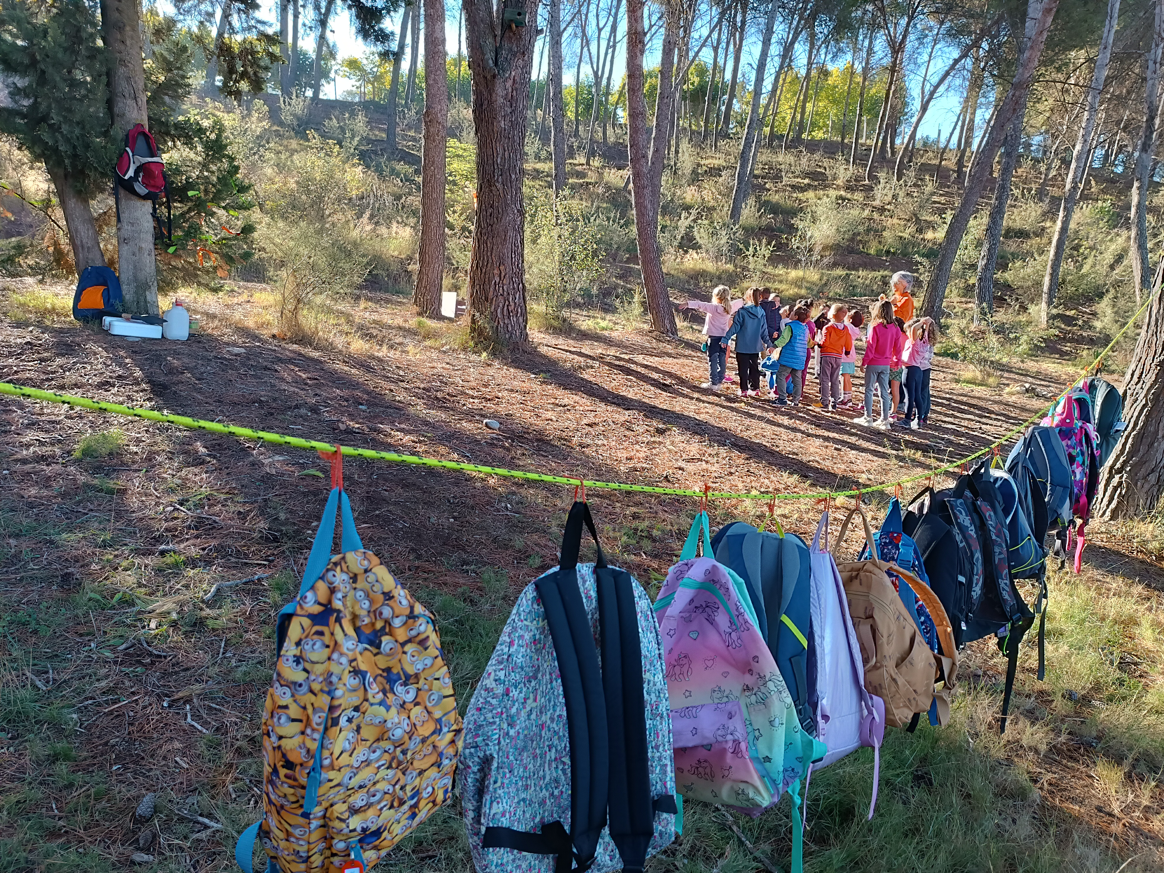 La primera sessió d'aquest curs i trimestre va ser el "Bany de bosc de tardor" en què, entre altres activitats, els infants van reflexionar a la natura sobre els seus desitjos per aquest curs i els van deixar escrits en cintes que després van penjar als arbres.