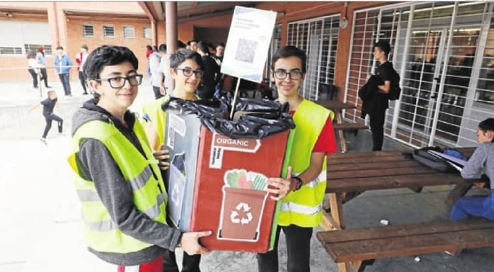 Dins el projecte STEAMBIENT han dissenyat i construït punts de recollida per a reciclar tot tipus de residus, estan posat a dins del centre i al pati.