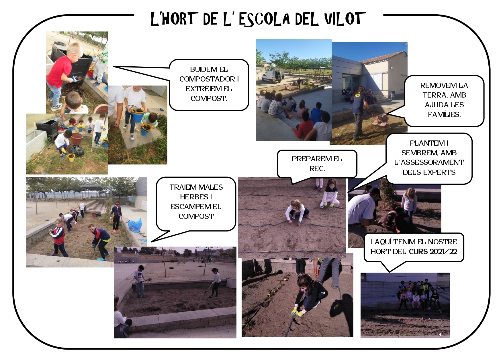 Hola, som els NENS I NENES DE CICLE MITJÀ DE L’ESCOLA DEL VILOT i avui us presentarem el nostre hort!