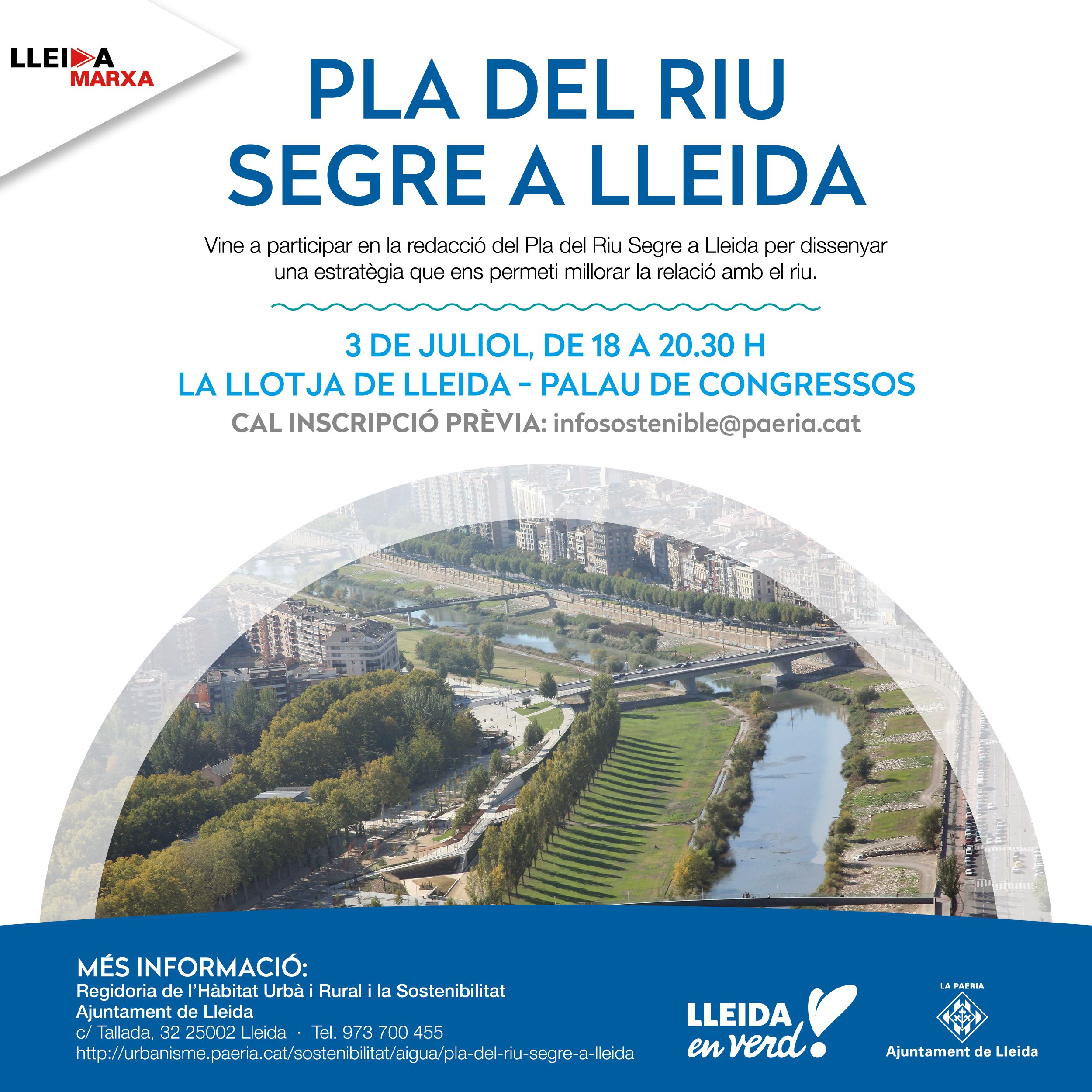 Des de l’Ajuntament de Lleida s’està treballant en la redacció del Pla del Riu Segre, amb la voluntat de dissenyar una estratègia que ens permeti millorar la relació amb el riu al seu pas per Lleida, tant des del punt de vista social, ecològic i cultural.