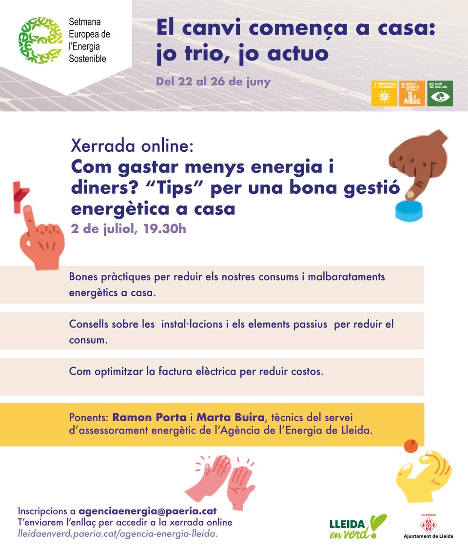 Inscripcions a agenciaenergia@paeria.es. T'enviarem l'enllaç per accedir a la xerrada online.