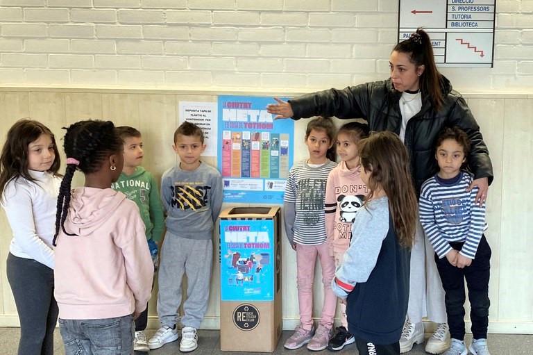 Amb una intervenció artística coordinada pels artistes Foxi i Lluk de la cooperativa REM es farà un primer apropament als hàbits de reciclatge de residus amb els nens, les famílies i la comunitat educativa en general. Per la qual cosa s'estan posant 10 punts de recollida de taps d'ampolles de plàstic als centres educatius i les entitats del barri, fets amb contenidors de cartó reciclat, i una auca en gran format traduïda a 5 idiomes (anglès, francès, àrab, castellà i català), amb missatges que incideixen en les temàtiques de neteja, convivència i civisme. Els missatges que s'hi inclouen són els següents: