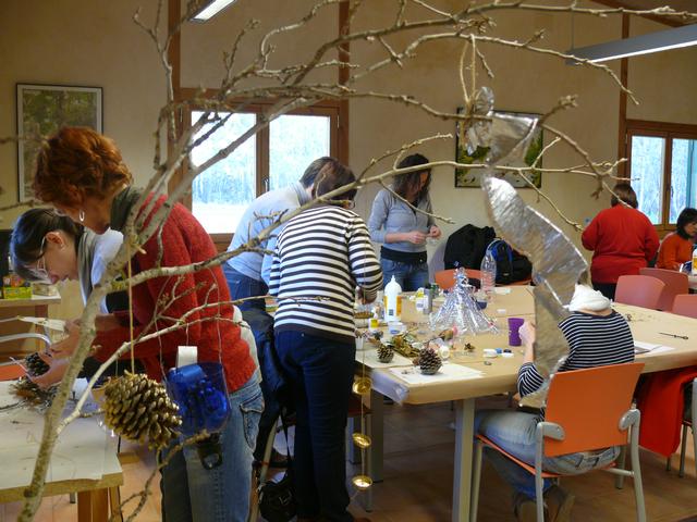 Taller d'elaboració de motius decoratius per a les festes de nadal amb material per reciclar. A càrrec de Rosa Franco, de l'escola d'art i plàstica Traç