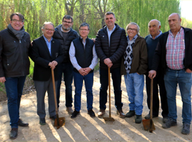El regidor de l’Horta, Joan Queralt, participa amb altres companys de consistori en la plantació d’exemplars de plataners facilitats per la Paeria.