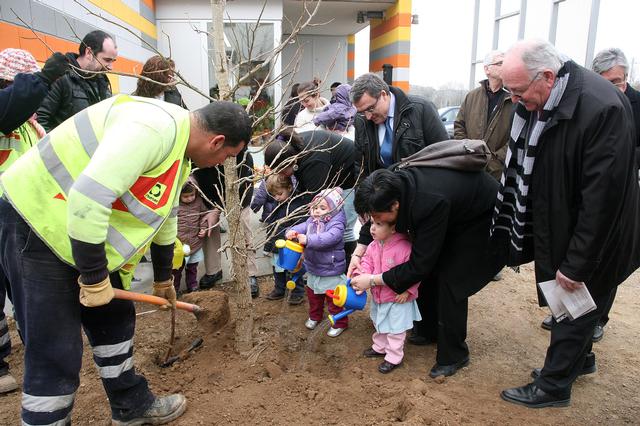 El paer en cap, que ha presenciat, la plantada d'arbres a l'entorn de l'Escola bressol, ha destacat que aquesta acció s'emmarca també en l'Agenda21 escolar, que promou els valors mediambientals entre els nens i nenes.