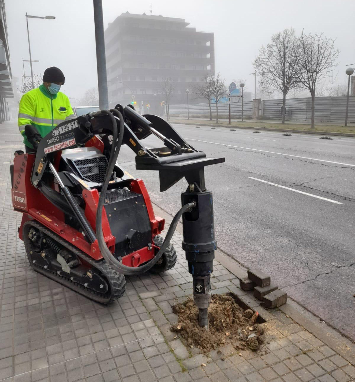 L’Ajuntament de Lleida ha iniciat els treballs per condicionar escocells a diversos punts de la ciutat per preparar-los de cara a la pròxima plantació d’arbrat. Els treballs per arrabassar els escocells, previs a la reposició dels arbres, és necessari, ja que elimina del clot les restes vegetals com les arrels i la soca de l’arbre anterior. La Regidoria d’Habitatge i Transició Ecològica ha previst actuar durant dos setmanes en uns 200 escocells, ubicats a diferents barris: Av. Miquel Batllori, c/Riu Llobregat, Av. Blondel, Gran Passeig de Ronda, c/ Bisbe Irurita, Av. Rovira Roure, Av. Prat de la Riba, c/ Baró de Maials, c/ Corregidor Escofet, zona de l’Institut Josep Lladonosa, i pl. Secà de sant Pere. El procés de l'arrabassat consisteix en utilitzar un estri especial, com una gran barrina, que amb una acció mecànica de trepanació va foradant poc a poc l'antiga fusta per deixar l'escocell buit. Un cop trepanat i extreta la soca antiga es fan les tasques de millora, per preparar la posterior plantació. En concreta, es repara l’anella de reg que hi ha a l'escocell, es comprova que funciona correctament i es substitueix el 60% de la terra del clot de plantació per posar terra vegetal de bona qualitat per millorar la implantació de l'arbre nou. La màquina que s’utilitza per arrabassar és especial per realitzar aquestes tasques (és una Toro Dingo TX 1000). Es més petita i maniobrable que el típic tractor pel que té menys impacte a la via pública i té la capacitat de treballar damunt la vorera sense interrompre el trànsit. A principis d'enguany està previst iniciar la plantació d'arbrat, amb 1.433 arbres i un miler d'arbustos nous, que contribuiran a dotar de més verd als carrers, reomplint escocells que fa temps que estan buits. |