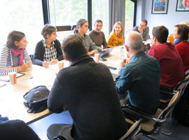 Durant la trobada s’han debatut les principals dificultats i oportunitats que presenta ara mateix el sector de la fotovoltaica, així com les mesures i els projectes possibles a impulsar a curt termini. Ha comptat amb la presència de representants de les empreses CIMNE, Km0 energy, Sofos, Jorfe, Becqel, Katae, Margalló Project, Som Energia i HolaLuz.