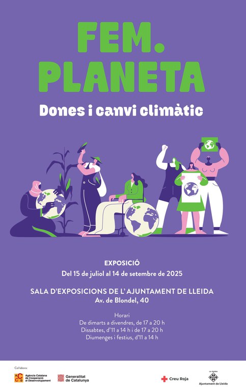 L’impacte desigual de la crisi climàtica en les dones arreu del món és el tema principal de l’exposició itinerant “FEM. Planeta. Dones i canvi climàtic”, que es pot veure a la Sala d’Exposicions de l’Ajuntament de Lleida, ubicada a l’Edifici del Casino Principal (Avinguda Blondel, 40).