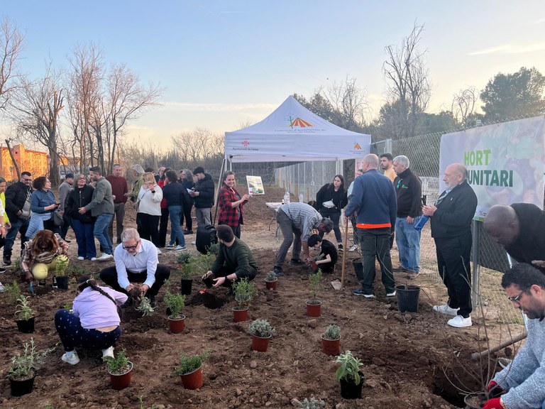 El paer en cap, Fèlix Larrosa, i el regidor de Participació, Roberto Pino, acompanyats de nombrosos veïns i veïnes i entitats col·laboradores, han participat avui en la plantada col·lectiva de plantes aromàtiques autòctones que s’ha fet per posar en marxa un nou hort comunitari en una parcel·la municipal de la zona 09, al carrer Ferran el Catòlic, davant del camp de futbol. Es tracta d'un projecte impulsat per l’Ajuntament de Lleida i La Descomunal adreçat a les famílies i entitats dels barris de La Mariola, Turó de Gardeny, Blocs Joan Carles, Ciutat Jardí i Joc de la Bola que té per objectiu promoure la vida comunitària i saludable i enfortir vincles.