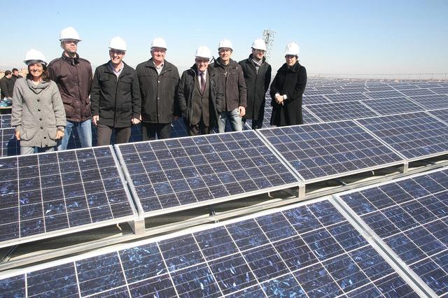 L’alcalde de Lleida, Àngel Ros, acompanyat dels tinents d’alcalde Marta Camps i Txema Alonso, i del regidor de Medi Ambient, Josep Barberà, ha visitat el parc solar que l’Ajuntament de Lleida està instal·lant a la coberta de l’estadi del Camp d’Esports. Un sistema fotovoltaic amb un total de 483 panells que estan connectats a la xarxa elèctrica i que produiran anualment l’energia que consumeixen 50 habitatges.