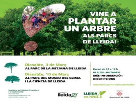 L’activitat, gratuïta, tindrà lloc dissabte 3 de març a partir de les 10 hores del matí. Cal fer inscripció prèvia al web www.paeria.cat Fèlix Larrosa: “El cicle de plantacions que porta a terme la Paeria en diversos espais naturals i places de la ciutat contribueixen a fer de Lleida una ciutat més bonica i agradable i amb una major qualitat de vida per als seus ciutadans i ciutadanes”