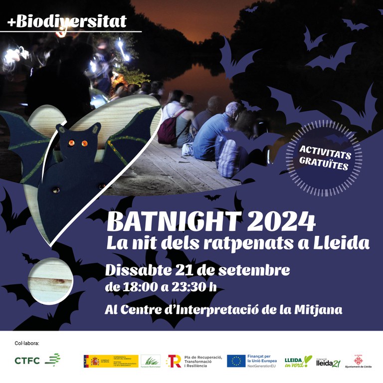 El Parc de la Mitjana de Lleida acull aquest dissabte 21 de setembre una nova edició de la Batnight, la nit dels ratpenats. La celebració, que es duu a terme arreu d’Europa, té com a objectiu donar a conèixer aquests mamífers –els únics amb capacitat de volar–, la seva alimentació, on s’amaguen, com s’aparellen i el seu paper dins de l’ecosistema. Les activitats arrencaran a partir de les 18.00h fins a les 23.30h en diferents punts i equipaments d’aquest espai natural.